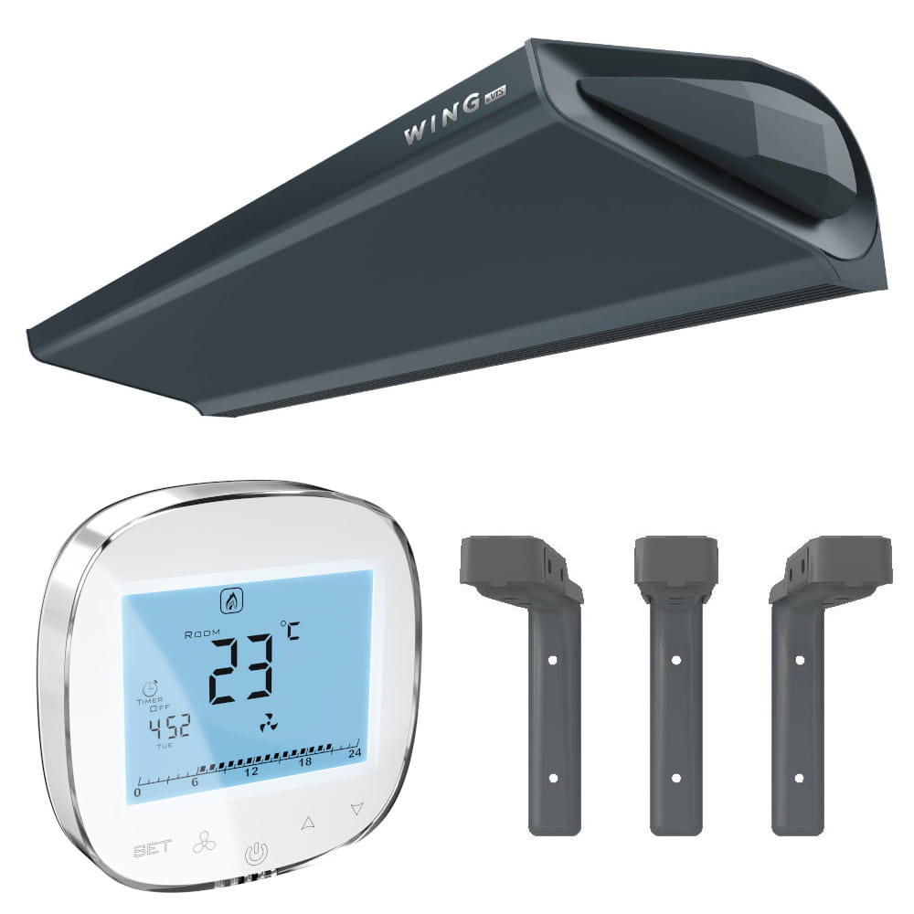 Kurtyna powietrzna WING to urządzenie nowej generacji, stworzone z zamiłowaniem do lekkości formy i nowoczesnego wzornictwa. Minimalistyczna bryła obudowy przypomina piękne a zarazem doskonałe w swojej prostocie skrzydło szybowca. Charakterystyczne diamenty zwieńczające urządzenie nadają formie obudowy niepowtarzalną harmonię, podkreślają zarazem jej elegancję.