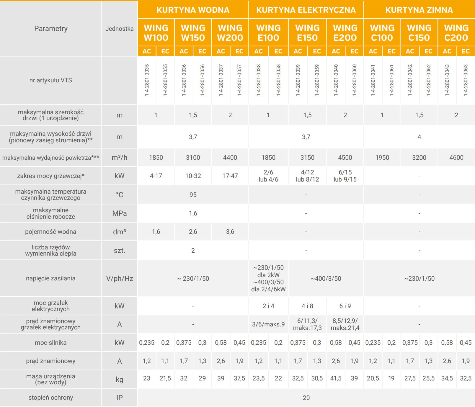 Kurtyna powietrzna VTS WING II W100 EC