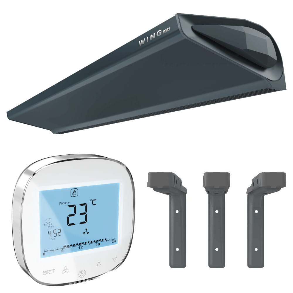 Kurtyna powietrzna WING to urządzenie nowej generacji, stworzone z zamiłowaniem do lekkości formy i nowoczesnego wzornictwa. Minimalistyczna bryła obudowy przypomina piękne a zarazem doskonałe w swojej prostocie skrzydło szybowca. Charakterystyczne diamenty zwieńczające urządzenie nadają formie obudowy niepowtarzalną harmonię, podkreślają zarazem jej elegancję.